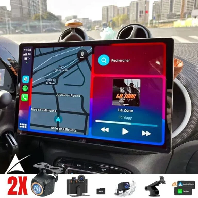 Полезен и естетически приятен, този преносим 2K цветен монитор е перфектен за носене със себе си, за да контролирате видеокамерите за наблюдение или да гледате видеоклипове, филми и изображения в автомобила: можете да го поставите на таблото или на подглавника благодарение на основата, включена в опаковката.