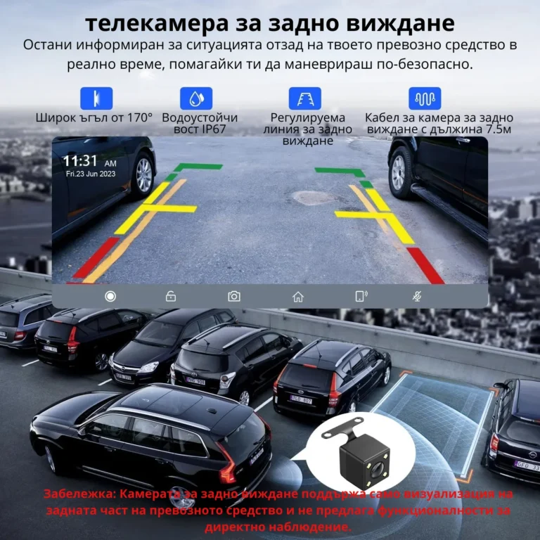 Мини мониторът има възможност да бъде монтиран на стойката с регулируем наклон, която може да остане на основата си, да се постави на стена или, например, в автомобила с самозалепващата се основа, която ще се прикрепи към таблото на вашето превозно средство.