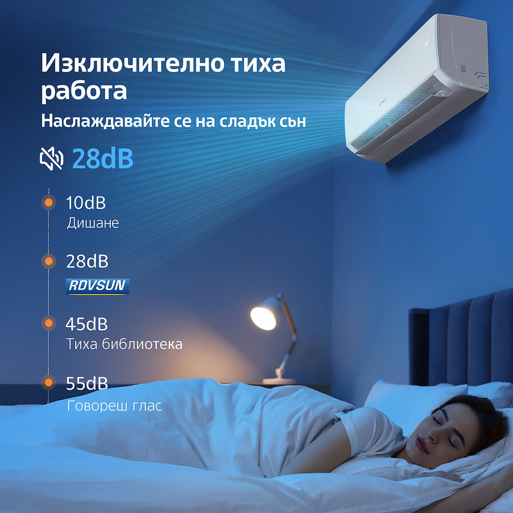 Този тих климатик е идеалният избор за тези, които търсят комфорт и удобство.Със своите напреднали технологии, той бързо отоплява и охлажда помещението, без нужда от обемисти тръби.За няколко секунди можеш да регулираш температурата по твое желание, наслаждавайки се на перфектен климат през всички сезони.Освен това, благодарение на многото вградени функции, можеш да персонализираш използването му според твоите нужди, всичко това при максимална тишина, за да не нарушава спокойствието ти.