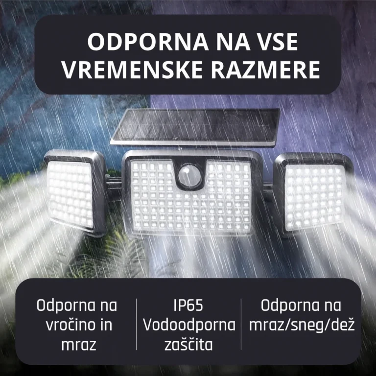 Ne boji se vremenskih vplivov, ima zaščito IP65.