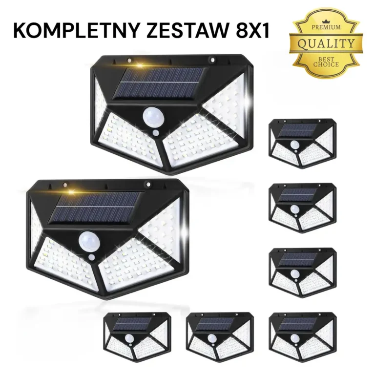 8× Соларни LED лампи (100 LED, 600 лумена, сензор за движение)