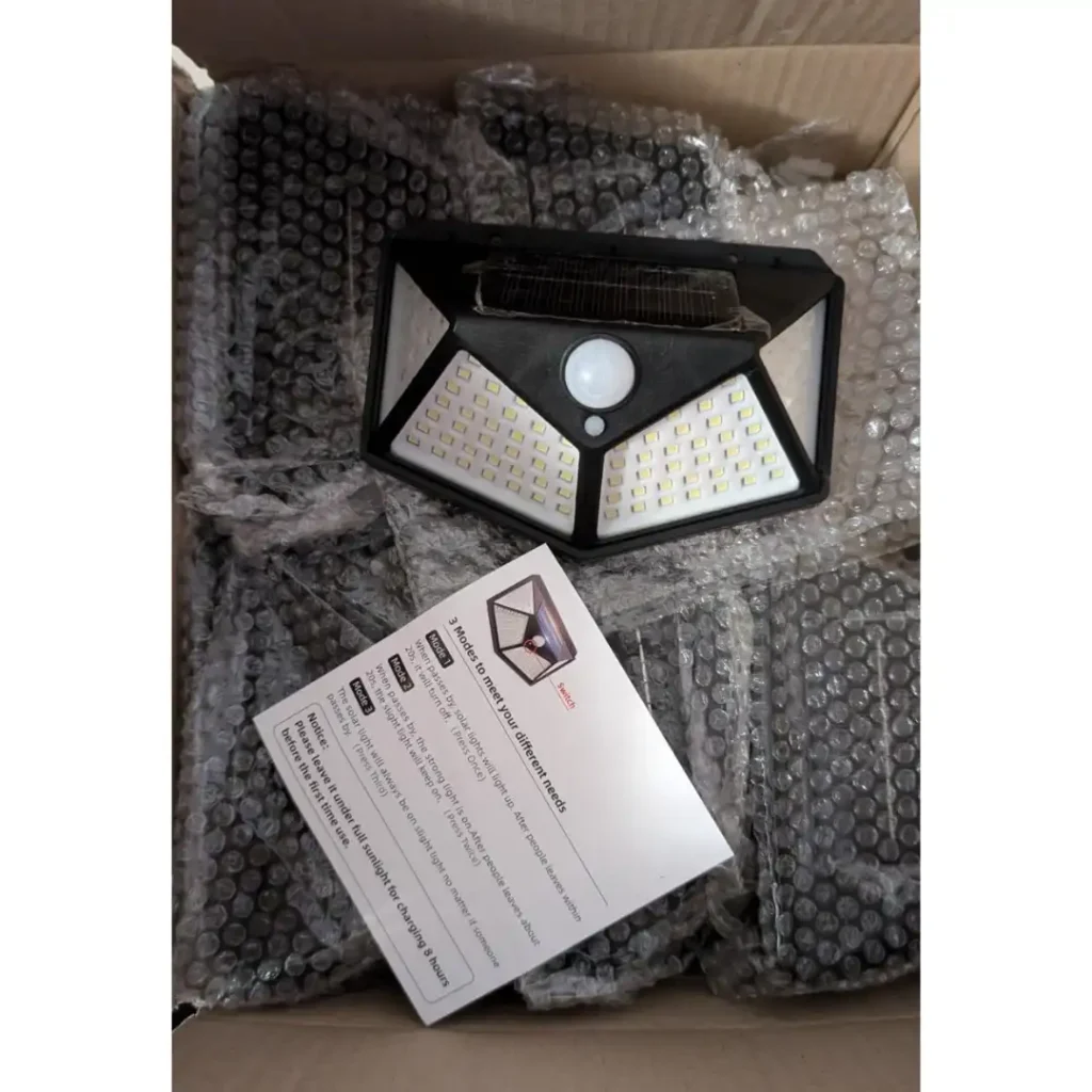 Вграденият сензор активира светлината мигновено, когато засече движение в обхват от 10–11 метра. 3 режима на работа: силна светлина, слаба светлина, постоянно/автоматично осветление.
