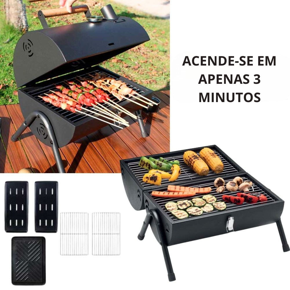 A estrutura leve e dobrável faz com que o grelhador ocupe muito pouco espaço e caiba facilmente na bagageira do carro. É a escolha ideal para os amantes de atividades ao ar livre – faça churrascos na praia, no parque ou no acampamento sem esforço nem peso desnecessário.