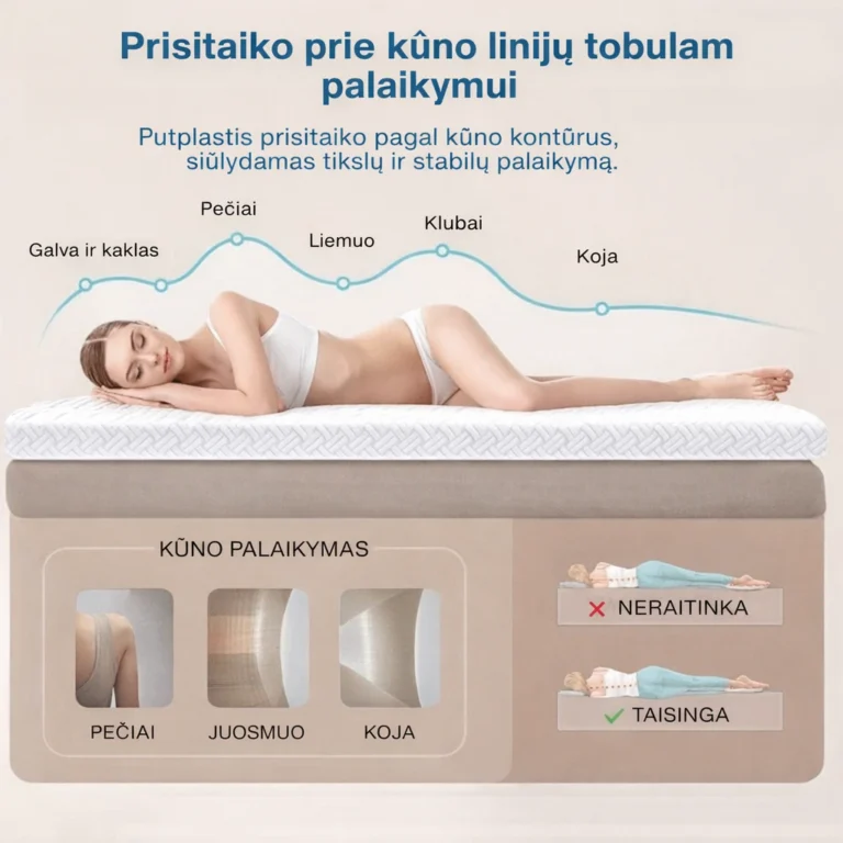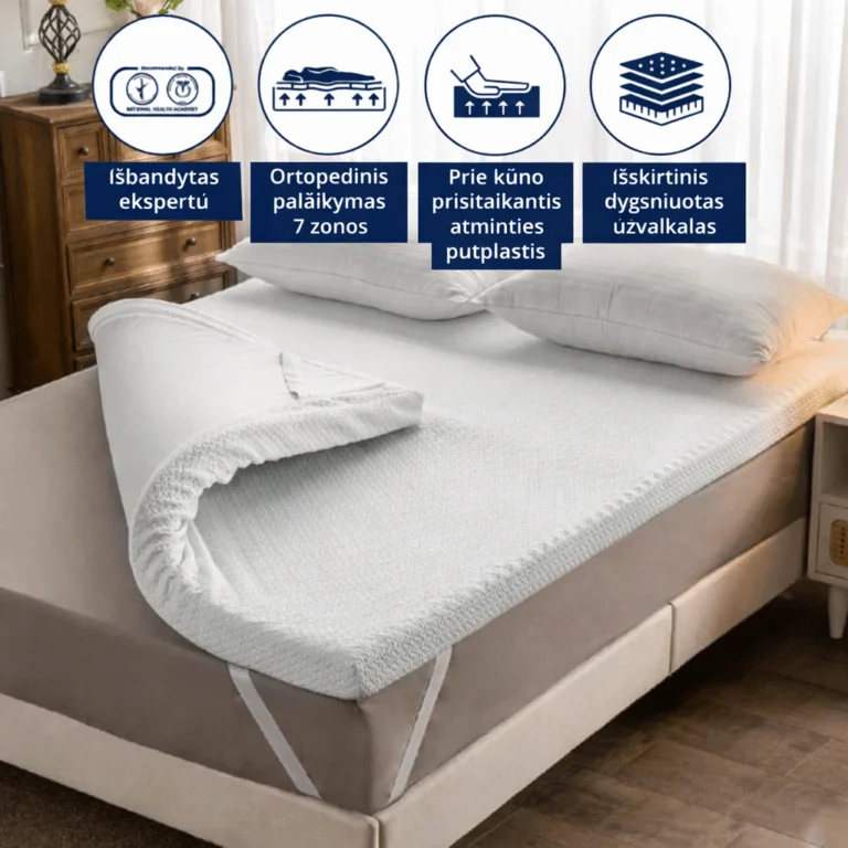 Dvigubo čiužinio ortopedinis antčiužinis – tai galutinis sprendimas: pažangios technologijos dėka jis sumažina spaudimo taškus, kurie sukelia dažniausius skausmus. Švelniai palaiko nugarą, pečius ir kaklą, užtikrindamas taisyklingą miego poziciją. Kiekvienas kūno linkis apgaubiamas minkštai ir tiksliai, suteikdamas tau akimirksnį palengvėjimą. Neleisk, kad skausmas gadintų tavo naktis ir dienas – su šiuo antčiužiniu pabudimas be skausmo taps nauja kasdienybe.